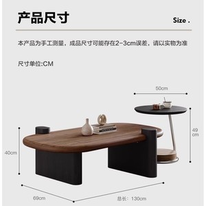 2025新款中古风椭圆形茶几客厅家用小户型实木茶几轻奢高级感复古