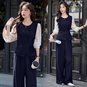 轻熟风马甲阔腿裤套装女2025春秋新款气质早秋独特超好看两件套潮