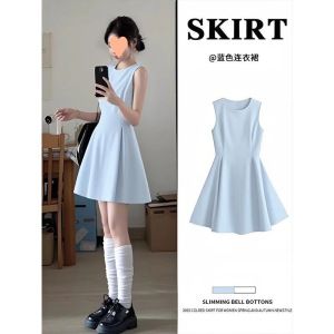 蓝色无袖短裙【升级面料】 通勤舒适穿搭