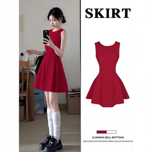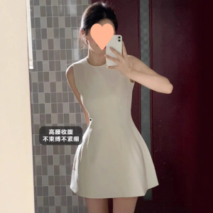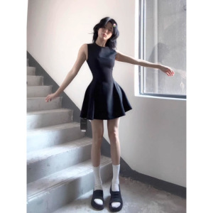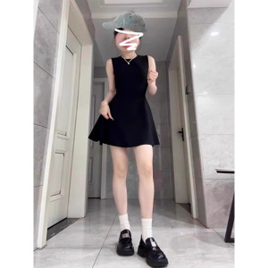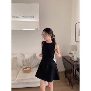 黑色无袖连衣裙女夏高级感法式小黑裙2025新款掐腰显瘦小个子裙子