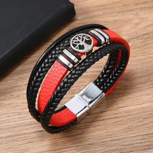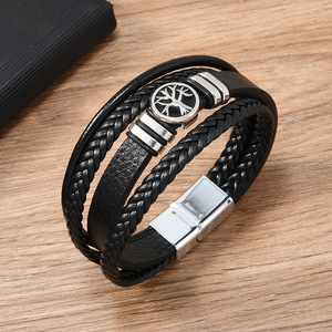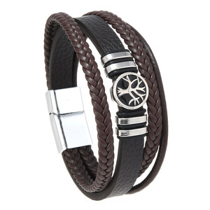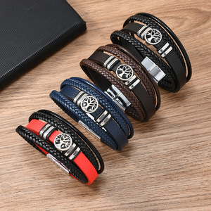 跨境新品欧美复古风多款现货生命树时尚百搭多层手工编织男士手镯