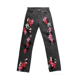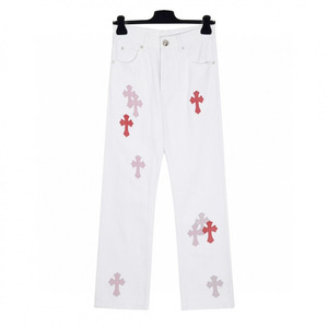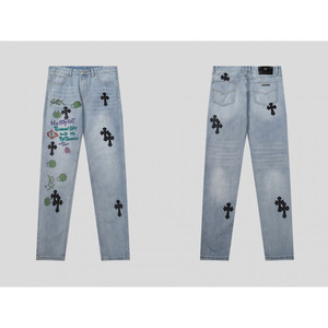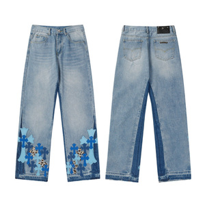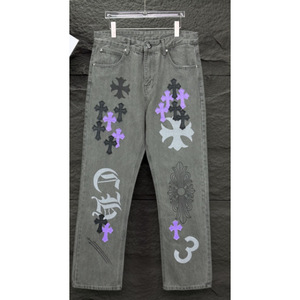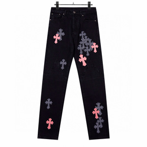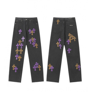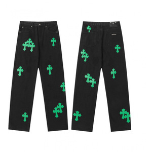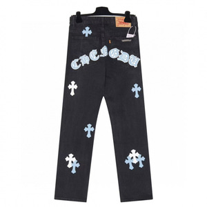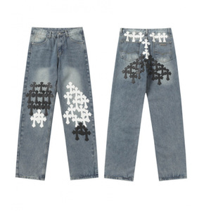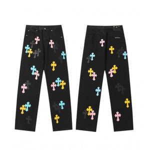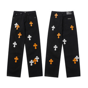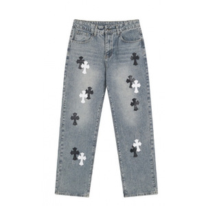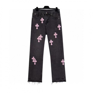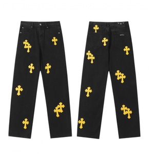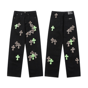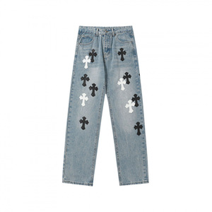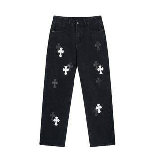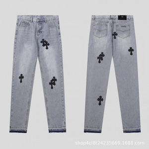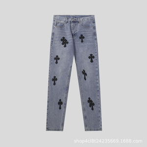 24正确版CH克罗伈十字架贴皮刺绣水洗牛仔裤情侣宽松牛仔批发代发