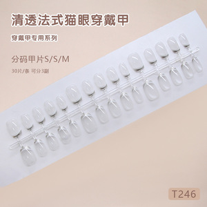 手工预制甲清透法式白开水猫眼干净气质欧美风可拆卸美甲30片