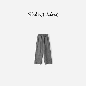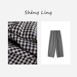 双色色织亚麻格子裤泡泡格肌理感文艺休闲显瘦萝卜裤SL50489
