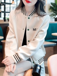 2025春秋新款美式棒球服开衫外套女冬加绒宽松百搭撞色休闲上衣服