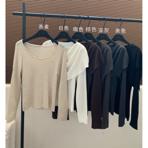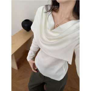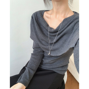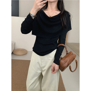 十三行新款气质一字肩长袖针织衫上衣女秋季时髦荡领披肩两件套潮
