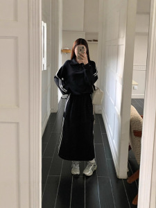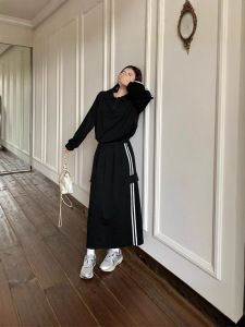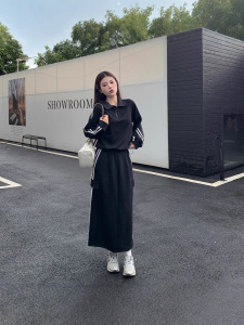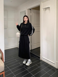 大码女装秋季时尚套装显瘦上衣休闲宽松松紧腰半身裙两件套