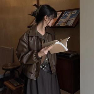 2025春秋冬季机车皮夹克短款复古上衣海宁皮衣外套女加厚加绒