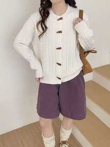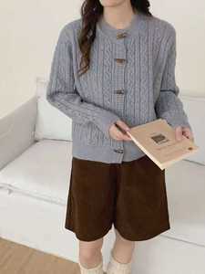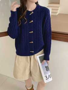 复古针织开衫毛衣外套牛角扣软糯糯毛衣开衫外套女圆领宽松版