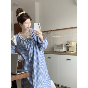 2025秋季 格子花边领喇叭袖长袖长裤睡衣套装家居服