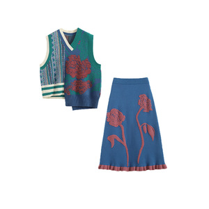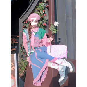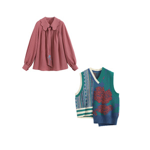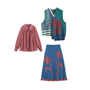 巨好看的早秋穿搭套装森系多巴胺针织马甲叠穿衬衫半身裙女三件套