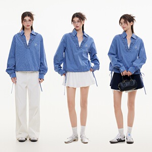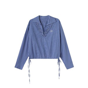 跨境设计感小众v领格子衬衫女长袖春夏新腰显瘦百搭休闲衬衣