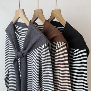 韩国跟单!2025秋新款百搭慵懒风气质休闲显瘦针织衫女披肩两件套