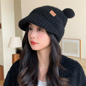 秋冬季可爱小熊耳朵毛线帽韩系百搭大头围包头帽显脸小保暖护耳帽