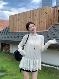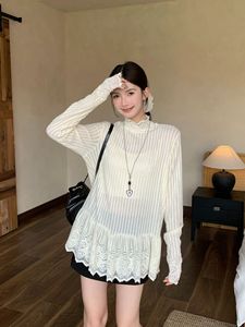 大码女装2025年秋季新款打底衫气质蕾丝韩系慵懒松弛感显瘦上衣