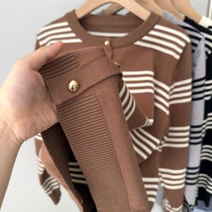 韩系条纹秋季撞色毛衣外套针织开衫小个子慵懒宽松显瘦上衣针织衫