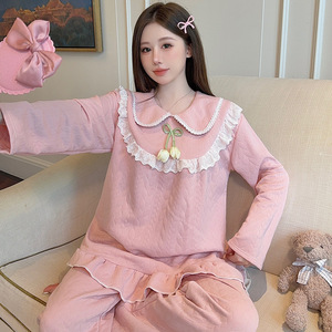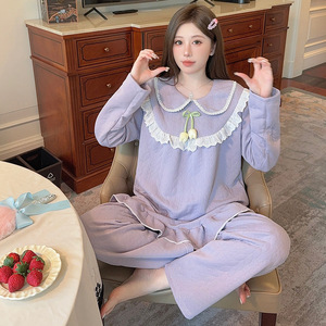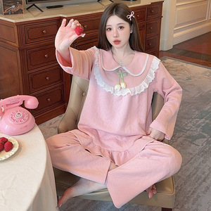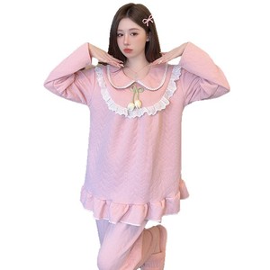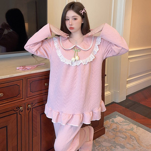空气棉夹层睡衣女款秋冬季甜美公主风长袖套装胖mm加肥大码家居服