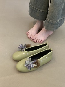 装饰可拆~软皮软底平底单鞋女2025韩系新款圆头浅口一脚蹬奶奶鞋