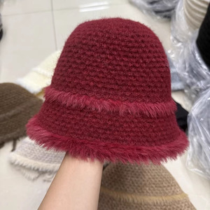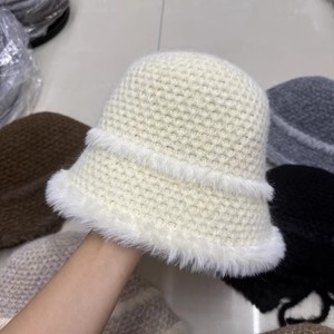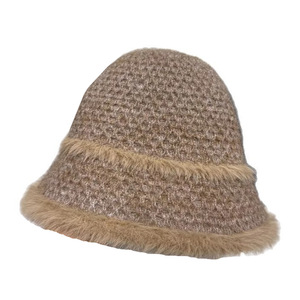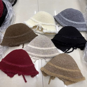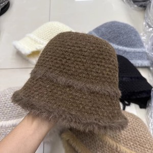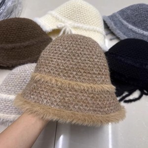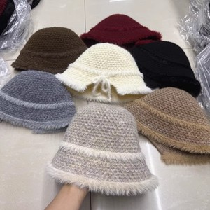 2025新款细绳蝴蝶结后开叉毛绒针织渔夫帽子女秋冬季保暖毛线盆帽