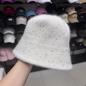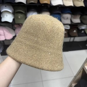 秋冬保暖重工亮片显瘦毛线渔夫帽子女小众减龄针织水桶帽盆帽时尚