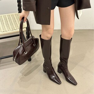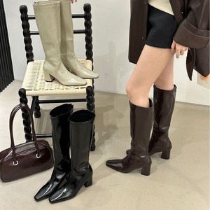 尖头长靴女2025秋冬季新款女靴马丁靴粗跟靴子长筒靴机车靴骑士靴