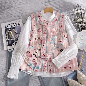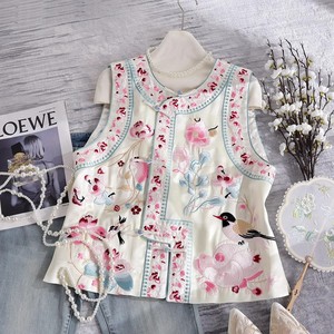 花鸟刺绣新中式女装2025年春秋新款马甲高端国风粉色坎肩马夹背心