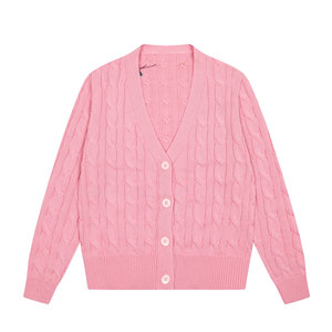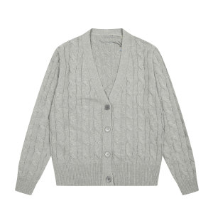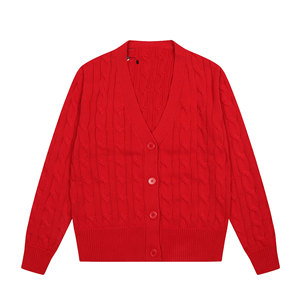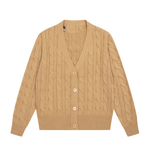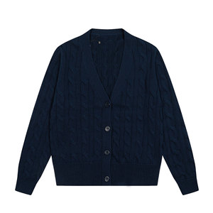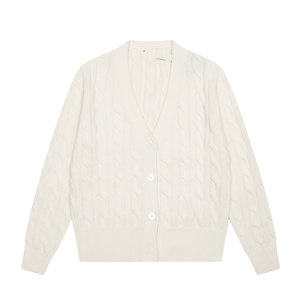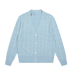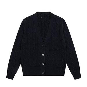 113秋冬新款LF家刺绣小标大V领纯色经典麻花针织开衫宽松外套女神