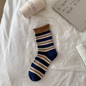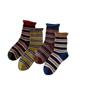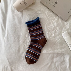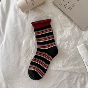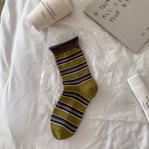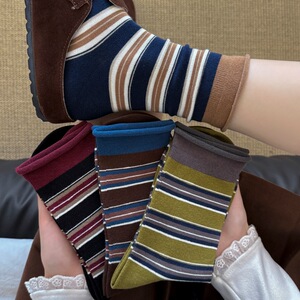 无骨袜子女秋冬季韩版条纹中筒袜ins撞色卷边百搭纯棉堆堆袜批发