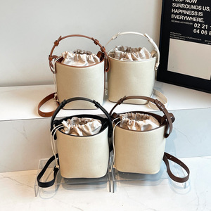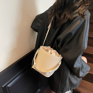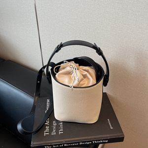 韩版休闲手提水桶包包女2025秋季新款高级质感撞色轻奢单肩斜挎包