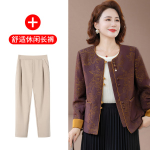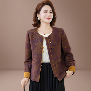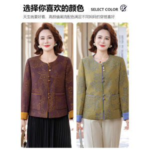 中年妈妈秋装外套复古印花上衣大码中老年女春秋开衫夹克2025新款