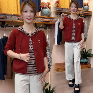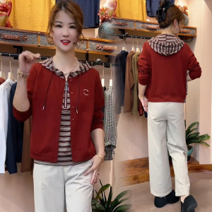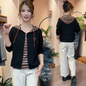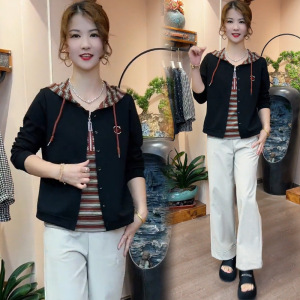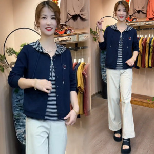 假两件条纹连帽卫衣女2025秋季新款宽松显瘦百搭减龄休闲长袖上衣