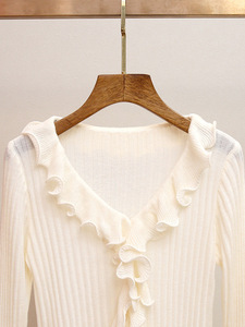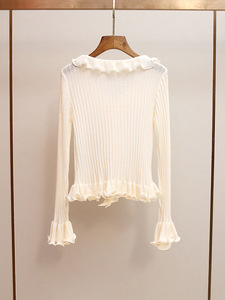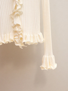 深圳南油高端女装秋季新款法式甜美荷叶边拼接喇叭袖修身针织衫女