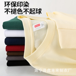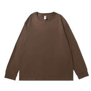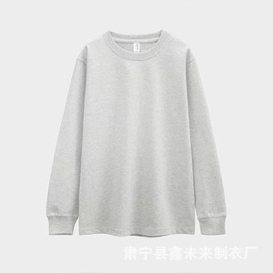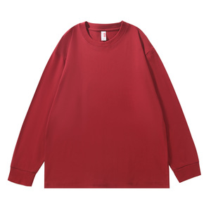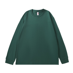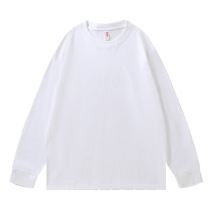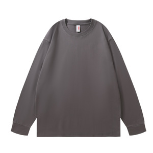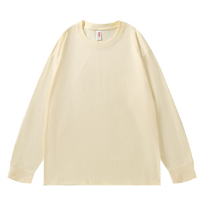 230G重磅纯棉落肩长袖T恤男圆领宽松潮牌纯色束口上衣秋衣印制