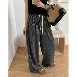 韩系条纹裤!2025秋季新款宽松抽绳高腰设计显瘦垂感休闲裤女