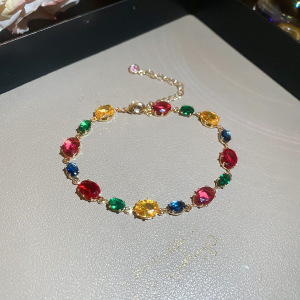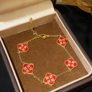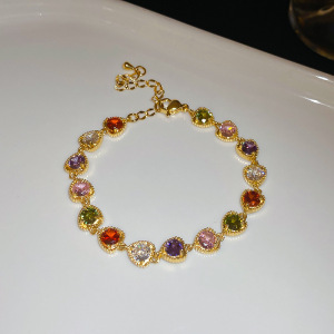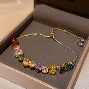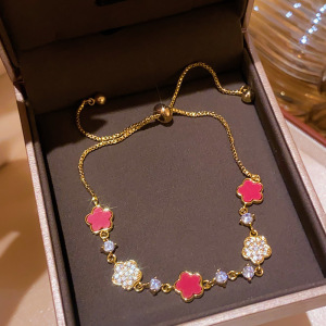 18K真金电镀锆石花朵手链法式简约宫廷风手环日常百搭手饰女批发