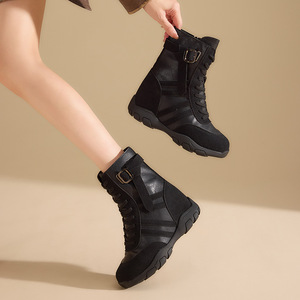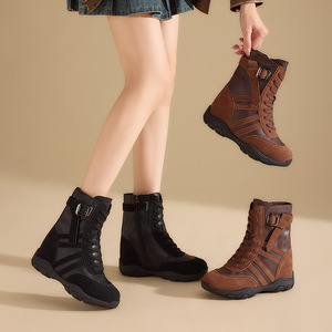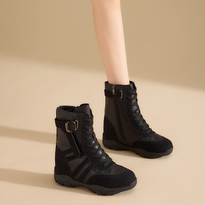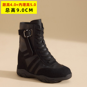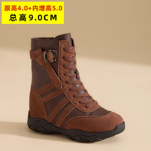 8090-6尖头马丁靴反绒2025新款秋冬时装褶皱靴骑士靴内增高9CM