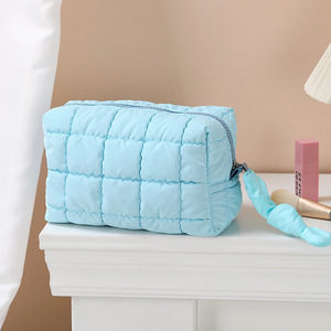 ins风云朵羽绒化妆包女小便携旅行手提大容量高级感填充棉收纳包