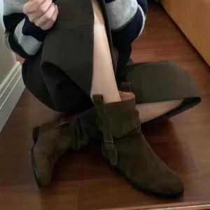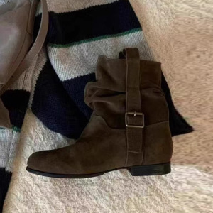 2025秋季小众设计女式皮靴法式时装复古圆头粗跟高级感短靴单鞋女