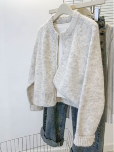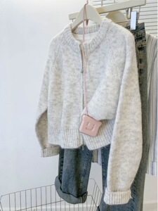 绿色毛衣外套2025秋冬韩系独特好看慵懒风宽松针织开衫上衣A7046