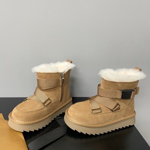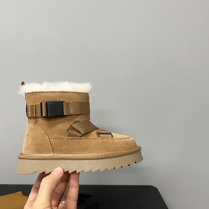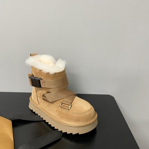 鞋面绑带装饰磨砂皮鞋口毛绒外翻儿童加厚保暖雪地靴2025年冬款靴
