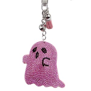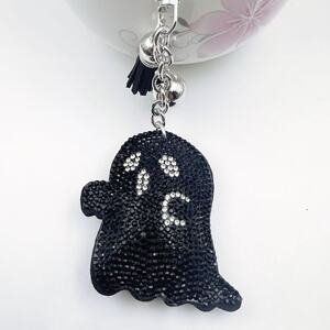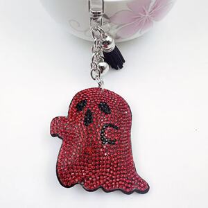 创意韩国绒烫钻阿飘幽灵钥匙扣镶钻鬼头女包配饰钥匙链万圣节挂件