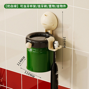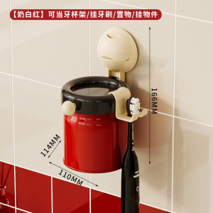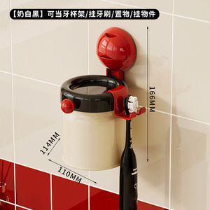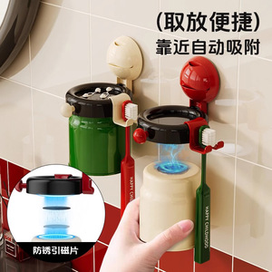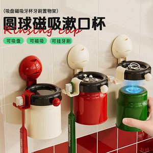 吸盘牙刷牙杯置物架壁挂式免打孔高颜值磁吸家庭情侣漱口杯刷牙杯