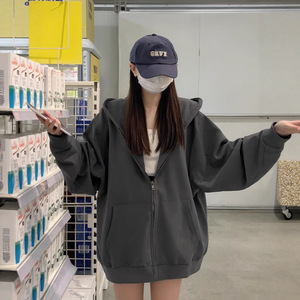 深灰色连帽拉链卫衣女秋冬加绒加厚2025新款爆款宽松外套长袖上衣