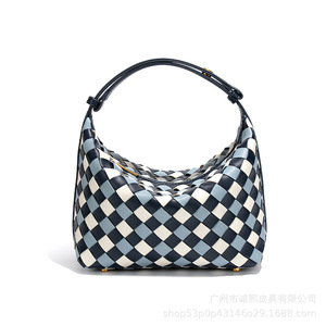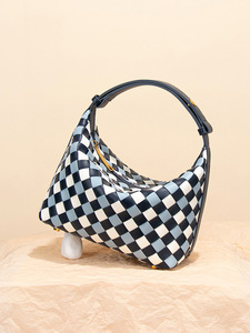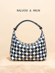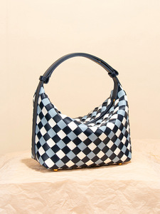 新款小众格纹编织包小巧精致百搭手拎包饭盒包单肩包腋下包饺子包