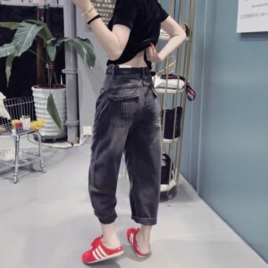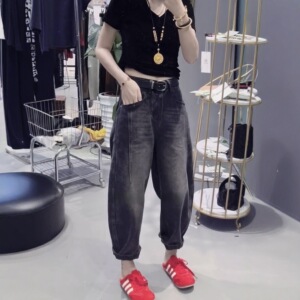 大码哈伦牛仔裤女2025年秋季新款弹力胖mm梨型身材裤子九分老爹裤