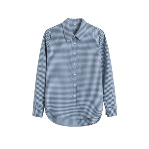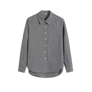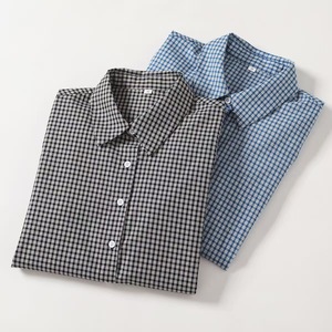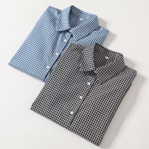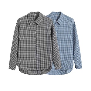 全棉翻领格子衬衫男女春秋新款纯色百搭宽松长袖衬衣上外套 9293
