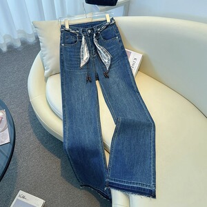 高端深蓝色阔腿牛仔裤女春秋2025新款今年流行爆款显瘦垂感直筒裤