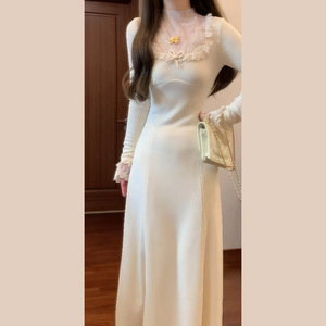 白色针织连衣裙子时尚感女秋冬季2025新款配大衣内搭长裙过年战袍
