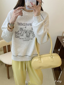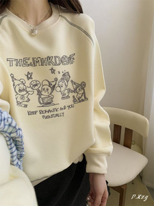 015慵懒风圆领卫衣女秋季新款薄款宽松韩版oversize女式上衣bf外