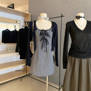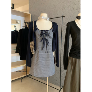 塞纳【WGWE】6880韩系修身显瘦设计感吊带短裙+开衫外套两件套女